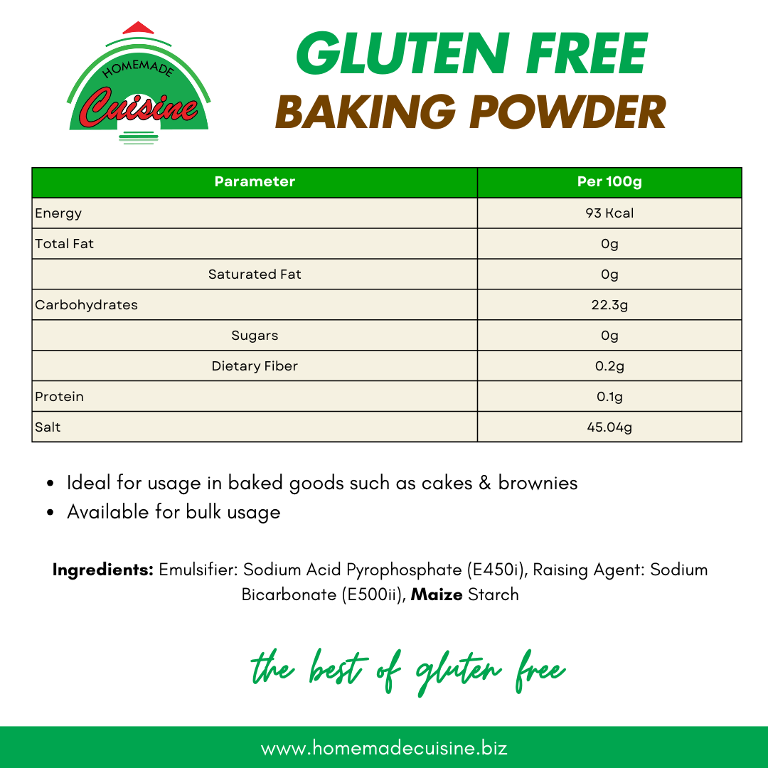 Our gluten free baking powder serves as an essential ingredient for your baked goods helping you achieve the right texture.