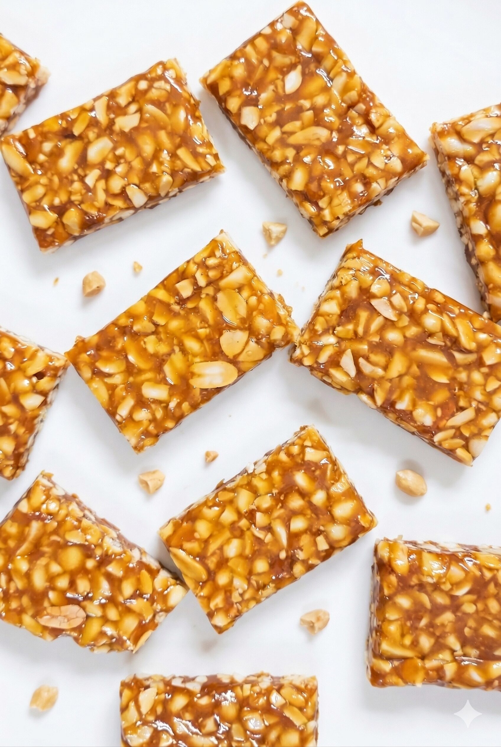 The ever-tasty and traditional peanut chikki – now available in gluten free! Made fresh in small batches, our Gluten Free Peanut Chikki is made from a delicious blend of roasted peanuts and sugar.